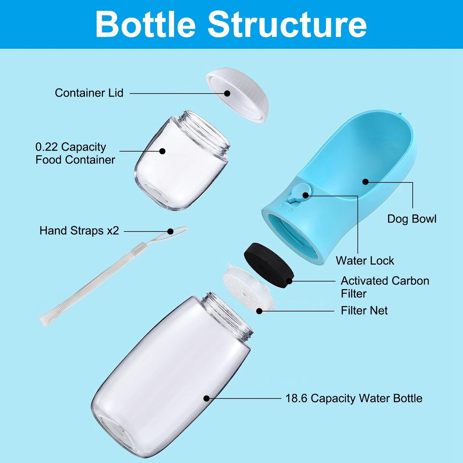 18.6OZ Portable Dog Water Bottle Pet Water Dispenser with Detachable Food Container Leak-Proof Lock Design for Dog Walking Traveling Hiking Outdoor Ac