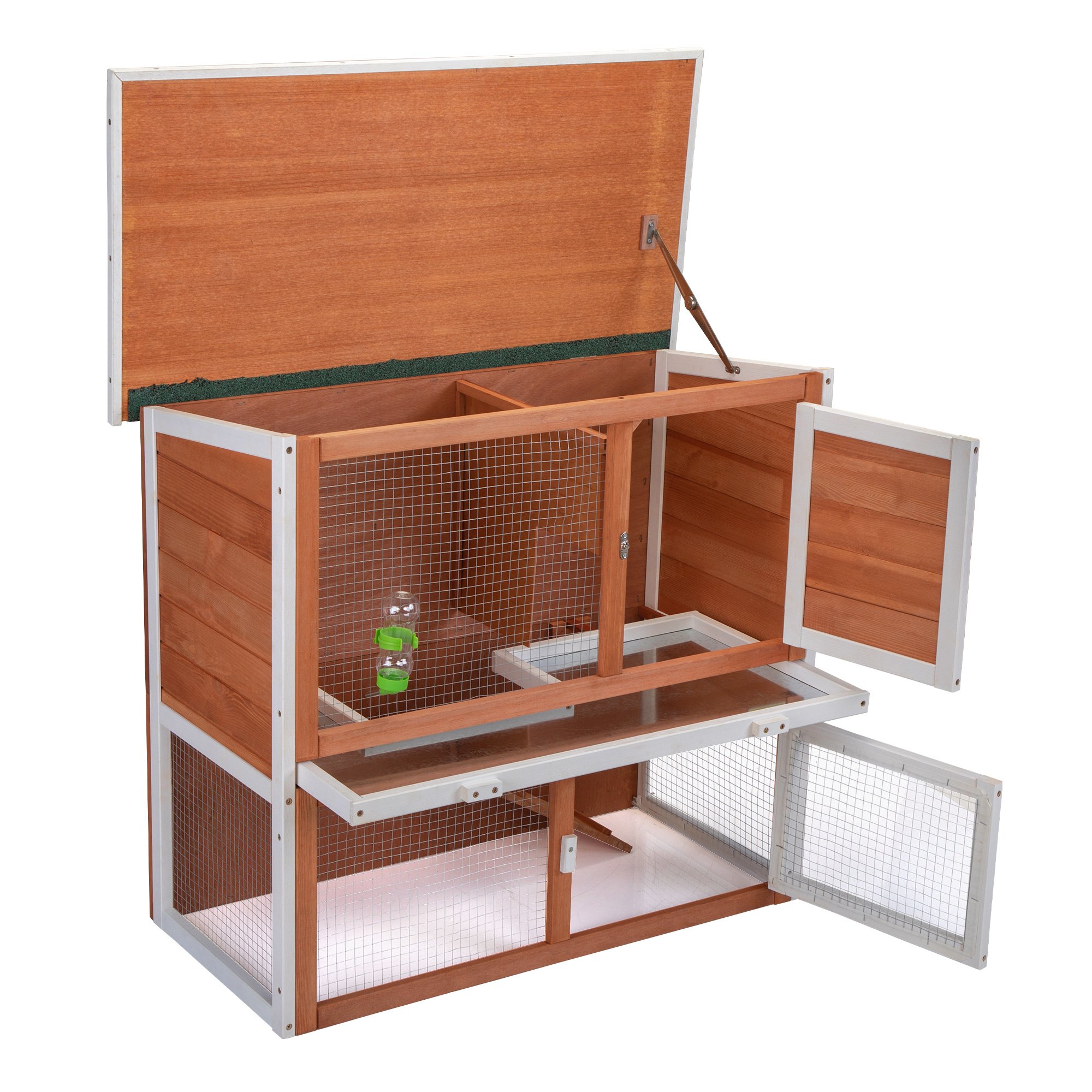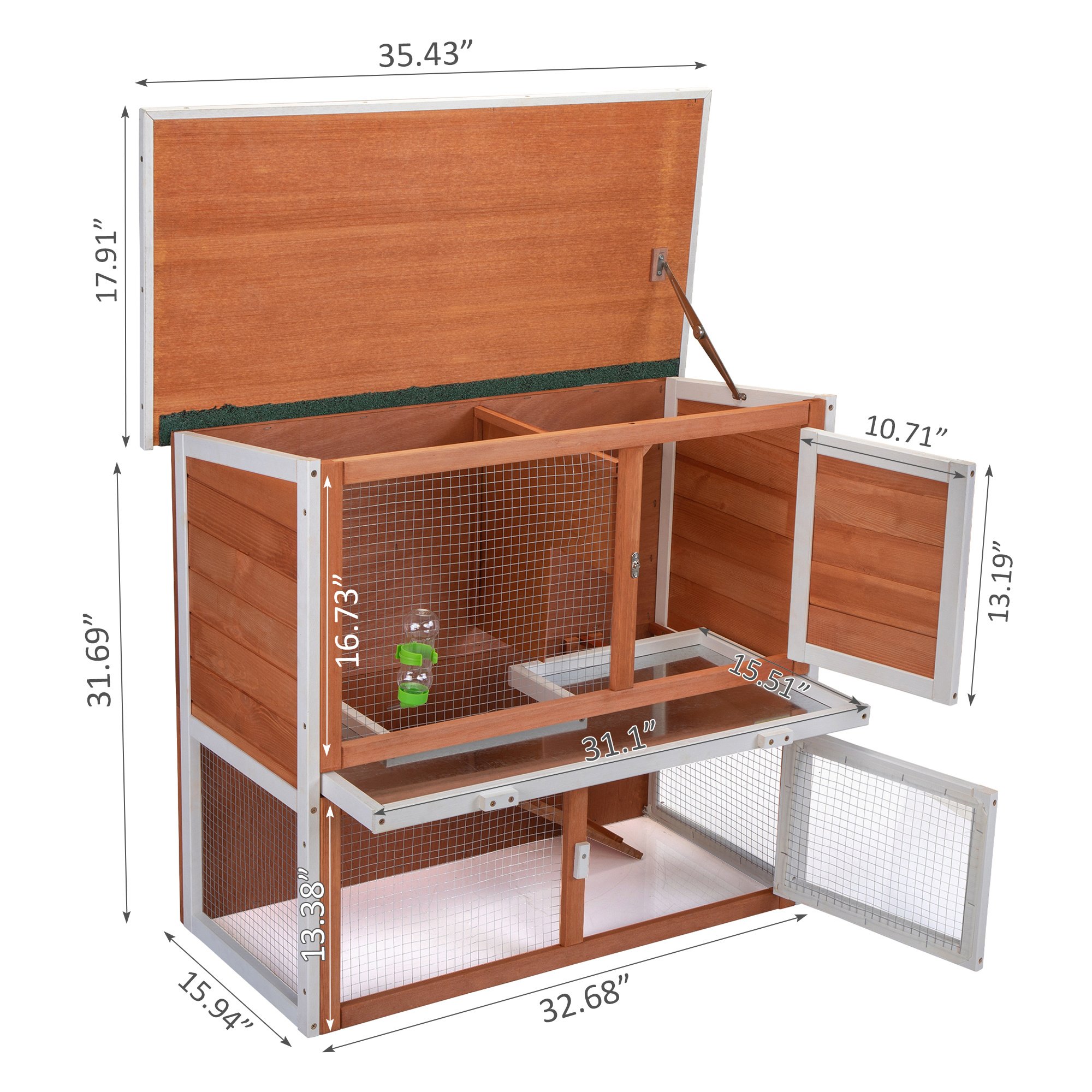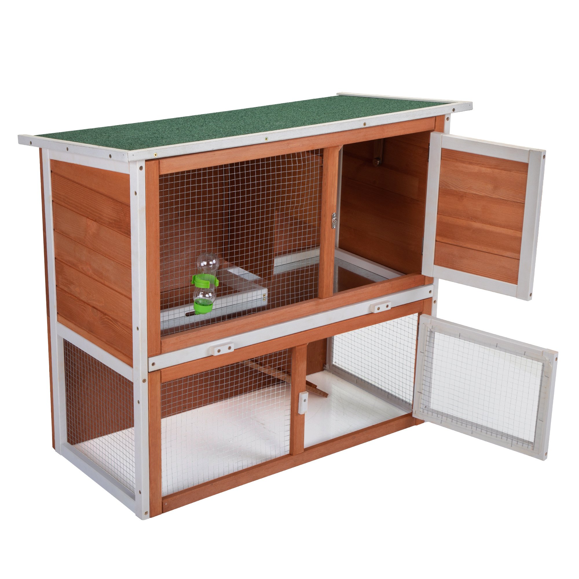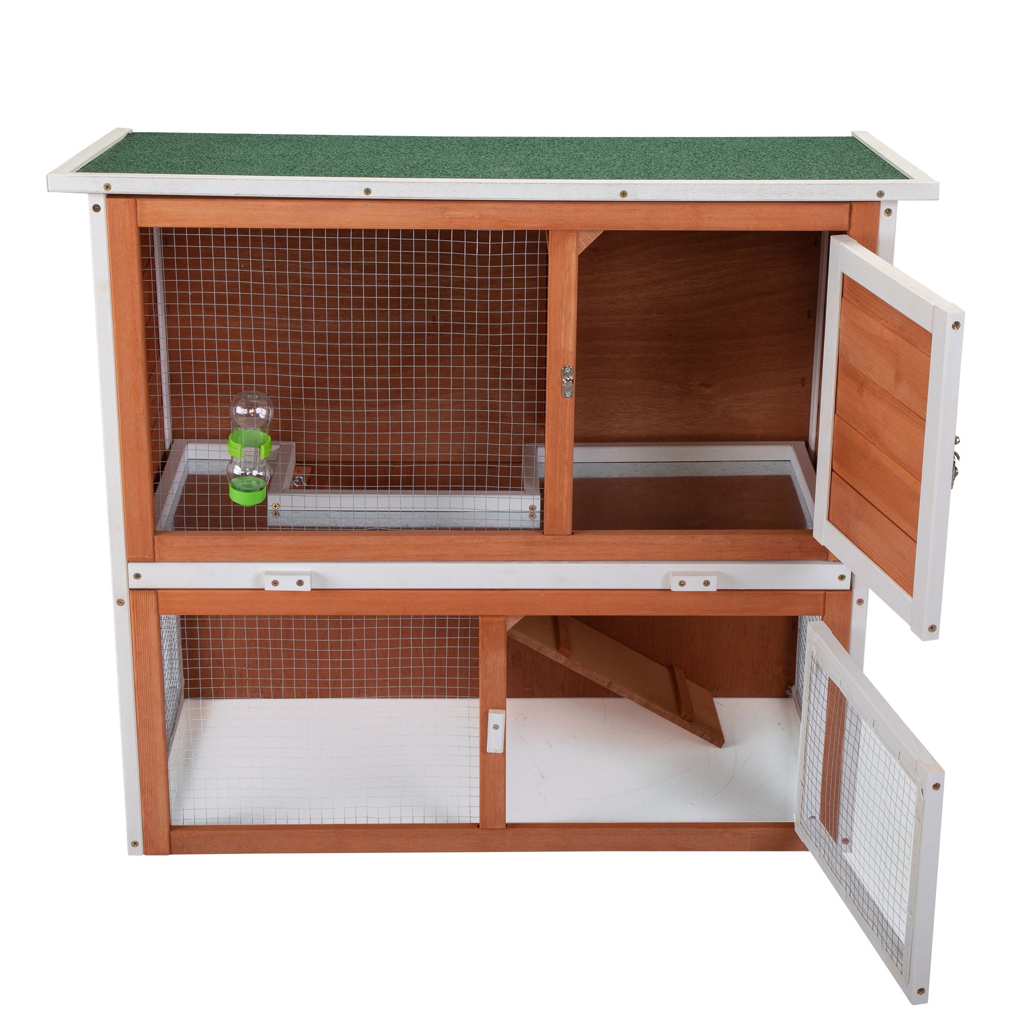 [Outdoor Hutch for Small Pets]: Featuring both ventilation and protection, the duplex hutch with a sloped asphalt roof, a private retreat, and an ample run, which builds a perfect house for small animals to live a safe and happy life.