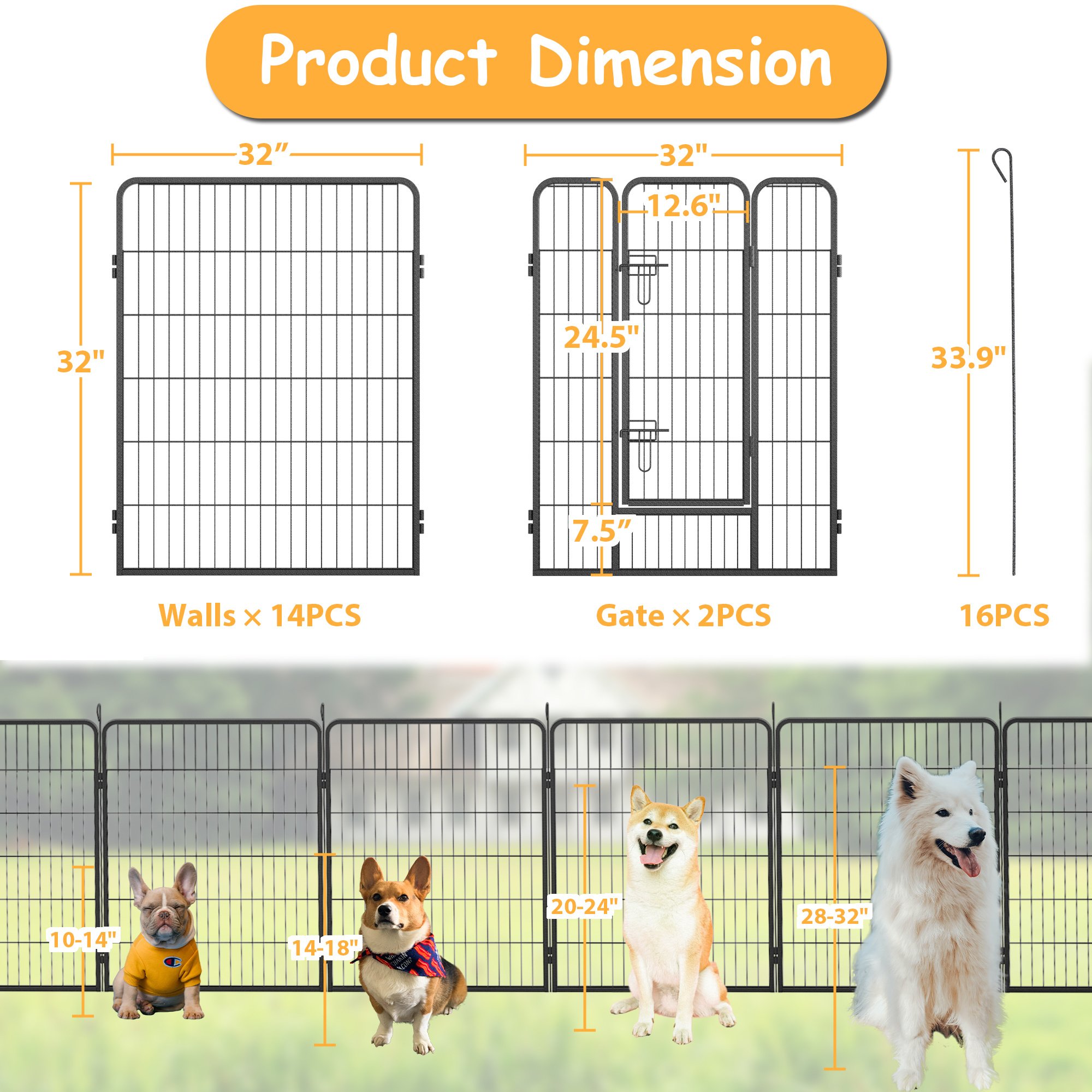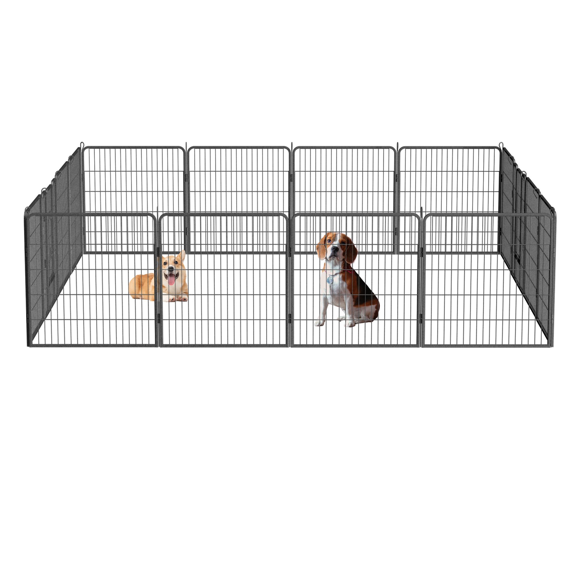 3.[Versatile to Use] It can be used as a kennel, crate, pet hangout and playroom. It's taller 32" height makes it an excellent exercise area for small, medium and large animals including dogs, ducks, rabbits, hedgehogs, hamsters, turtles, guinea pigs etc. They can all have fun in this fence.