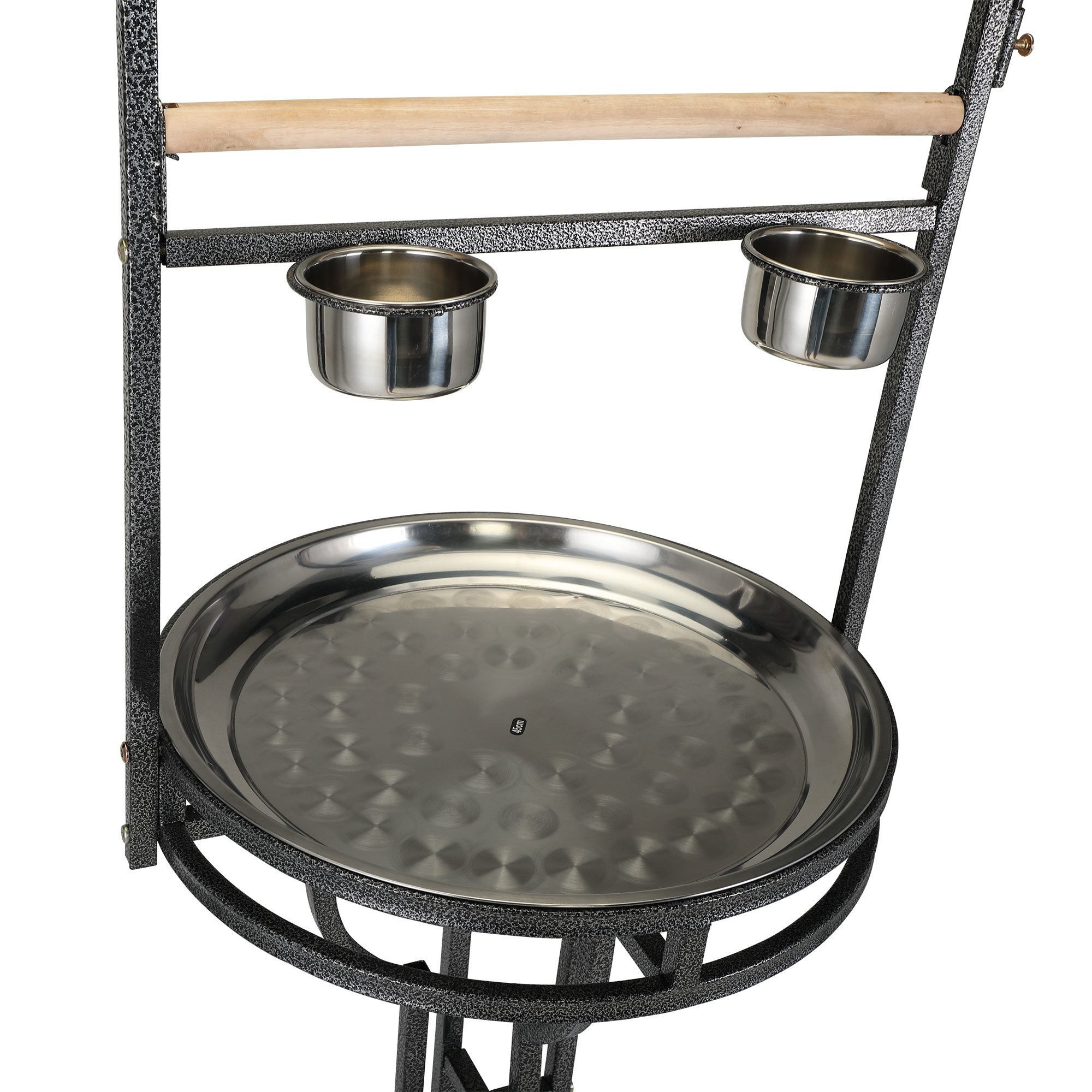 [Fully Equipped Perch]: This bird stand is equipped with an easy-to-grasp wooden perch, 2 stainless steel cups with holders and a waste tray. The removable design for easy to clean.