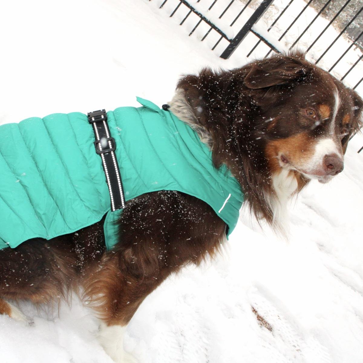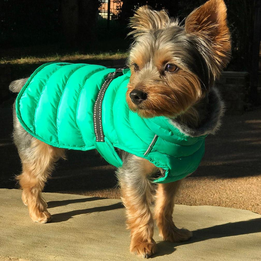Our Puffer Coats are perfect for all types of outdoor adventures. Made with a waterproof exterior, this coat is perfect for keeping your dog warm and dry. Lined with thick fleece and filled with warm fiber insulation, your pup will be ready to take on the trail ahead. We have worked tirelessly to ensure a perfect fit for dogs of all shapes and sizes; from a 3-pound pup to a 150-pound pooch, the Puffer Coat is sure to be a perfect fit every time. Featuring a simple design that slips over the dog’s head and a quick snap of the adjustable buckle over the back with a leash hole for easy walking.