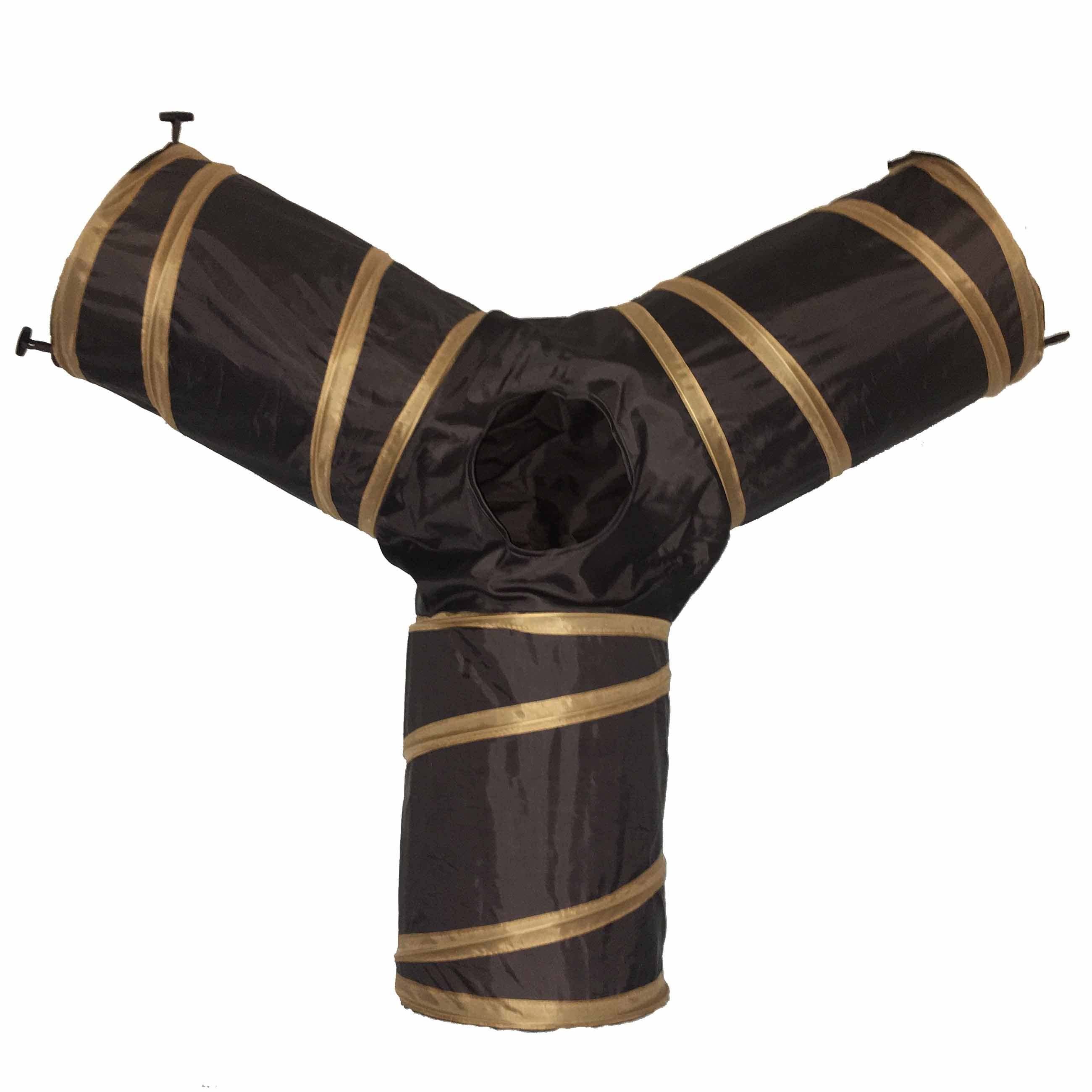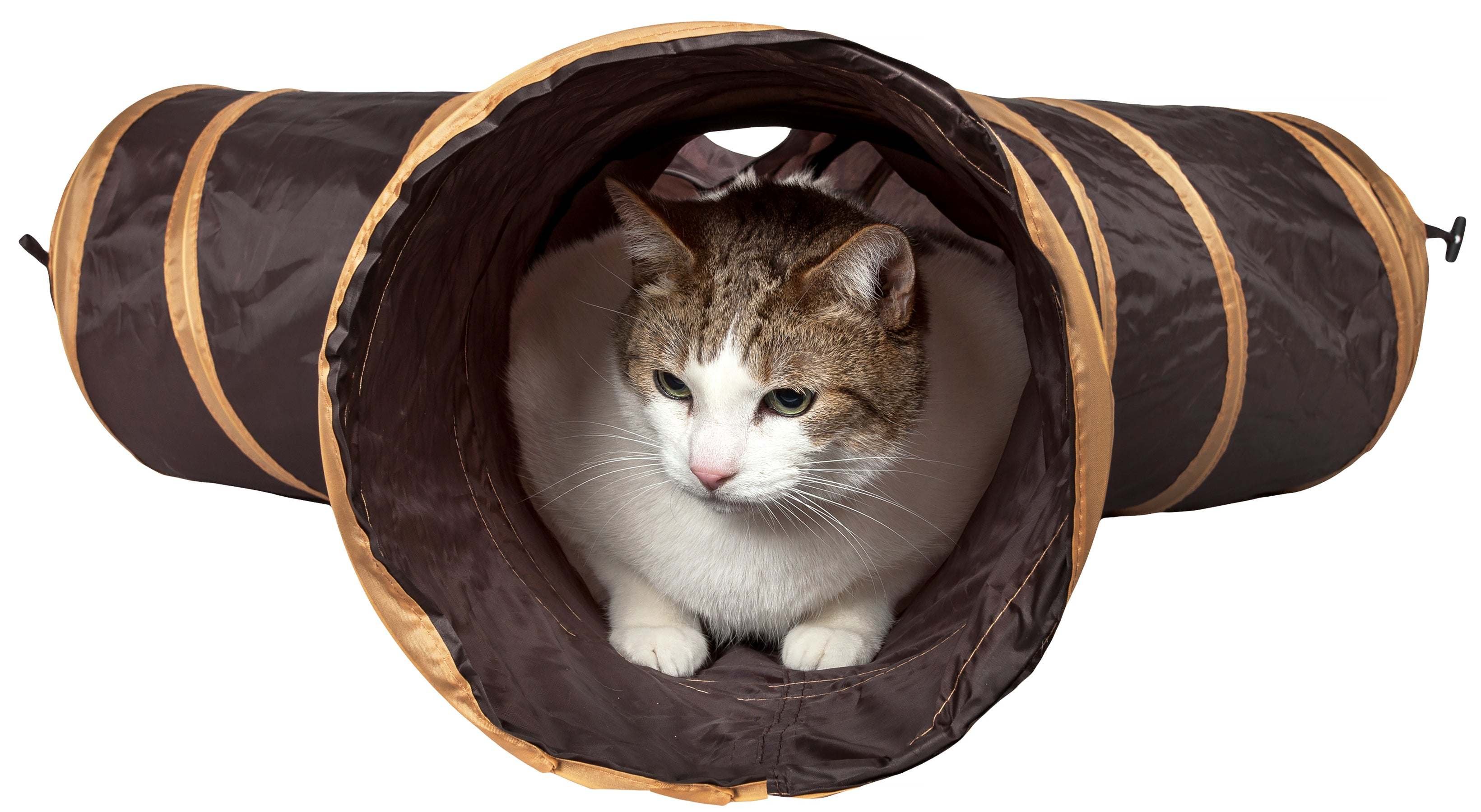 The Pet Life 3-Way Kitting-Go-Seek Interactive collapsible passage Kitty Cat Tunnel is composed of crackle tear-proof polyester and a durable lightweight inner wiring frame. Features 3 connecting striped expandable tunnels with a peep hole located at the center. Great for usage with multiple cats. The Cat tunnel completely collapses and folds. perfect for outdoor fun or travel. Perfect for all sized cats. Available in Multiple Colors.