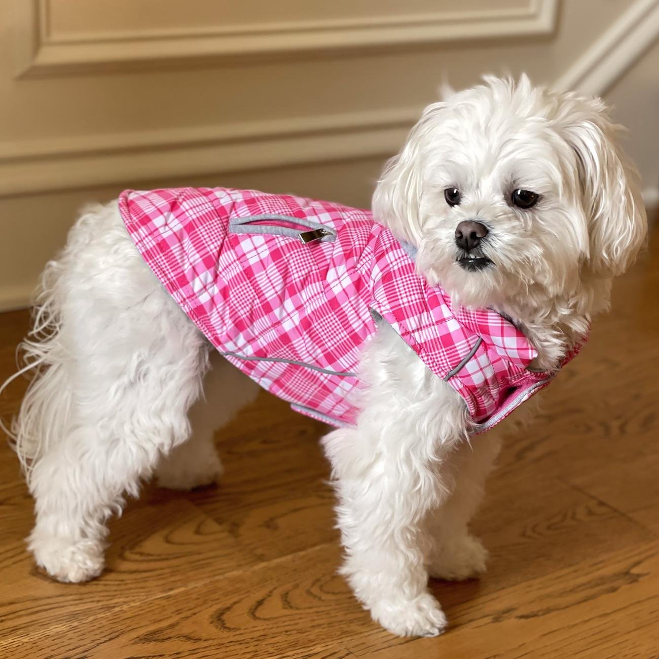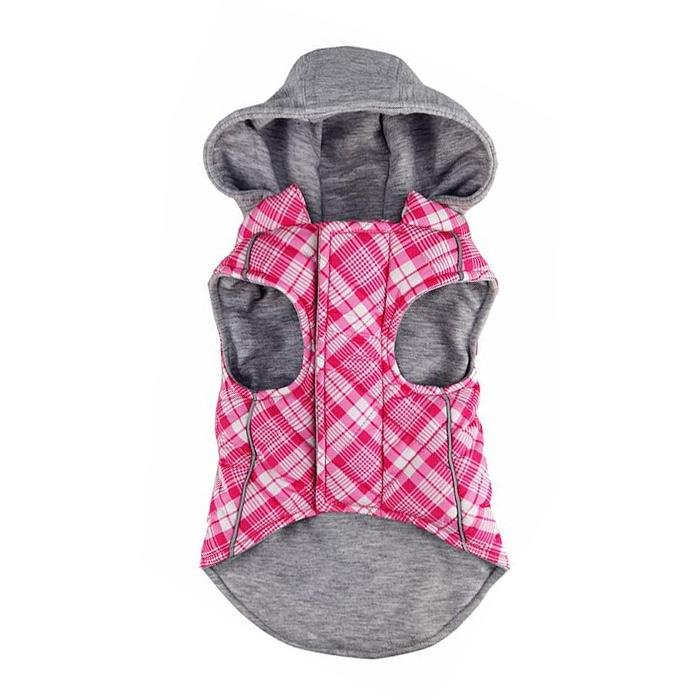Our Flannel Weekender Sweatshirt Hoodies are great for pups on the go! The outer shell is a soft plaid flannel while the inner lining is cozy, jersey material. The hood is also made of jersey material and can easily zip off when not needed. Reflective stripping makes your pup noticeable in low light while the two-inch fastener down the chest provides an adjustable closure.